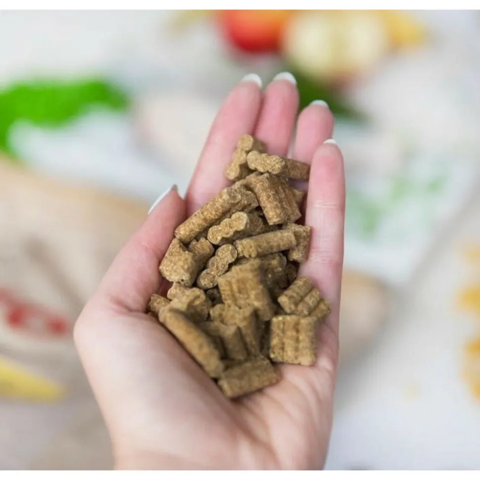 Ontdek Kivo Energy, de vernieuwde brokjes voor actieve honden! Boordevol natuurlijke ingrediënten, vitaminen en mineralen, en geschikt als volledige voeding voor volwassen honden. Deze koudgeperste brokjes behouden optimaal de voedingsstoffen, dankzij het lagere productieproces. Verrijkt met zalmolie, prebiotica, groenten, fruit en kruiden zoals erwt, wortel, banaan, appel, cranberry en peterselie. Het vet/eiwit percentage is hoger, ideaal voor actieve honden of honden met een te laag gewicht. Bereid met gedroogde kip, gedroogd rundvlees en gepofte rijst. Geef jouw harige vriend(in) een energieboost met Kivo Energy!