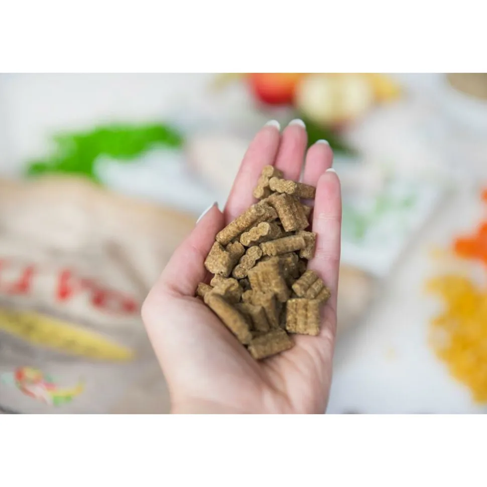 Deze vernieuwde glutenvrije brokjes zijn een ware traktatie voor je hond! We hebben heerlijke foodies toegevoegd en alle gluten verwijderd, omdat honden hier vaak minder goed op reageren. Het belangrijkste ingrediënt is gedroogde kip, perfect voor een gezond verteringsstelsel. Deze smakelijke maaltijd zit boordevol natuurlijke ingrediënten, vitaminen en mineralen, en is geschikt voor alle rassen. Deze brokjes zijn koudgeperst en geproduceerd zonder toevoegingen, vrij van gluten, soja, suiker, zout, kunstmatige stoffen en onnodige vulmiddelen. Door het persen op lagere temperaturen blijven de voedingsstoffen optimaal behouden. Verrijkt met zalmolie, prebiotica, groenten, fruit en voedzame botanicals zoals erwten, wortel, banaan, appel, cranberry, brandnetel en peterselie.