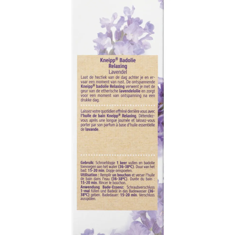 Laat de hectiek van de dag achter je en ervaar een moment van rust. De ontspannende Kneipp® badolie Relaxing verwent je met de geur van de etherische lavendelolie en zorgt voor een moment van ontspanning na een drukke dag.