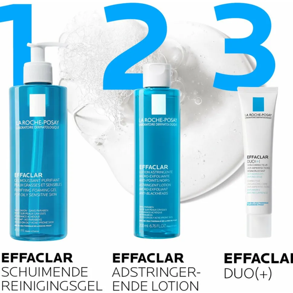 Effaclar is een verzorgings- en hygiëneproduct die speciaal is ontwikkeld voor de vette huid met neiging tot acne. De lotion helpt de poriën onmiddellijk verkleinen en vrij te maken, dankzij een verbinding van sebumregulerende, zuiverende bestanddelen en micro-exfoliërend LHA. De poriën van de huid worden kleiner en dus minder zichtbaar, de huidtextuur van het gezicht wordt fijner en gelijkmatiger.
