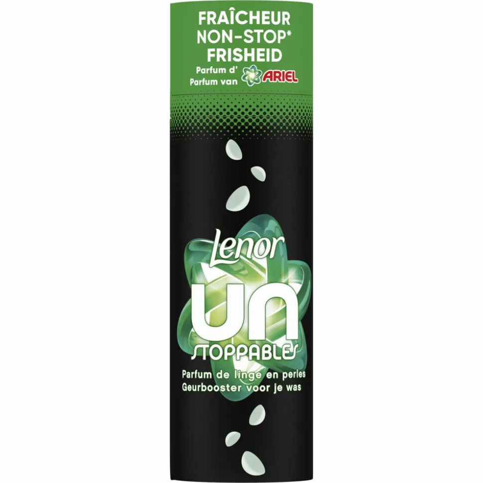 Ontdek Lenor Unstoppables geurbooster voor de was, geformuleerd met technologie voor langdurige frisheid, om het wasgoed een boost van non-stop frisheid te geven die tot 12 weken in de kledingkast kan duren. De geurdeskundigen van Lenor raden Unstoppables geur van Ariel aan als je echt van de frisse geur van schoon houdt. Lenor Unstoppables zijn verkrijgbaar in verschillende geuren en elke geur geeft de was een heerlijke frisse geur. Voeg het toe aan elke was bovenop de gebruikelijke werkwijze. Lenor Unstoppables geurbooster voor je was heeft een vochtbestendige kartonnen verpakking.