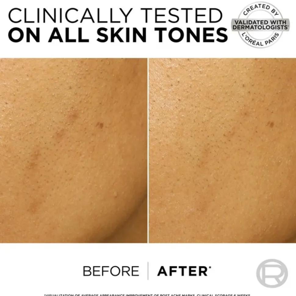 Donkere vlekken en post-acnevlekken? Schil ze weg. Een door dermatologen gevalideerde zachte exfoliërende peeling geïnspireerd op professionele peelings. Aangedreven door het verhelderende actieve Niacinamide en 25% exfoliërende zuren van verschillende groottes [AHA, BHA en PHA], exfolieert en vernieuwt de formule de huid.