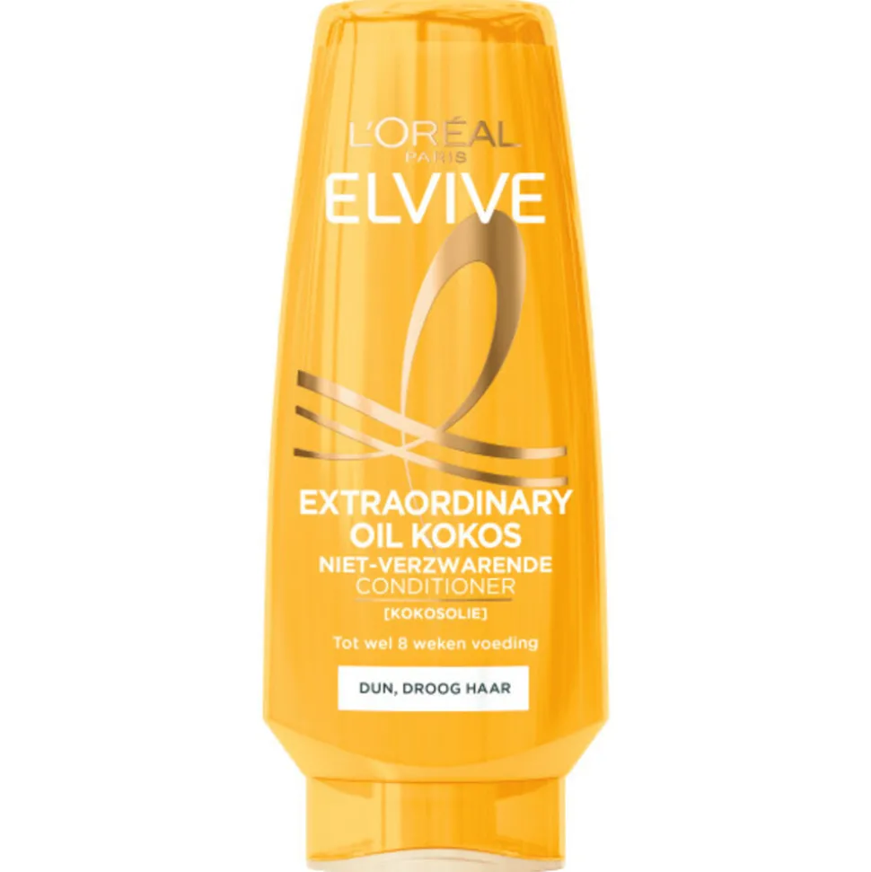 L’Oréal Paris Elvive Extraordinary Oil Fijne Kokos Niet-Verzwarende Conditioner is speciaal ontwikkeld voor dun, droog haar dat vaak dof en stug is, en vitaliteit mist. Het is verrijkt met fijne kokosolie voor zichtbare haartransformatie en intensieve voeding, zonder te verzwaren. Geef je haar tot wel 8 weken voeding.