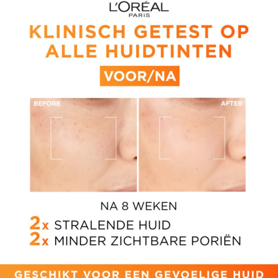 - Na 1 maand: De huidtextuur is verbeterd, de teint is gelijkmatiger, poriën en lijntjes zijn klinisch verminderd. Huid is 2x stralender en 3x gladder*. *klinische test, 63 proefpersonen, 4 weken.
