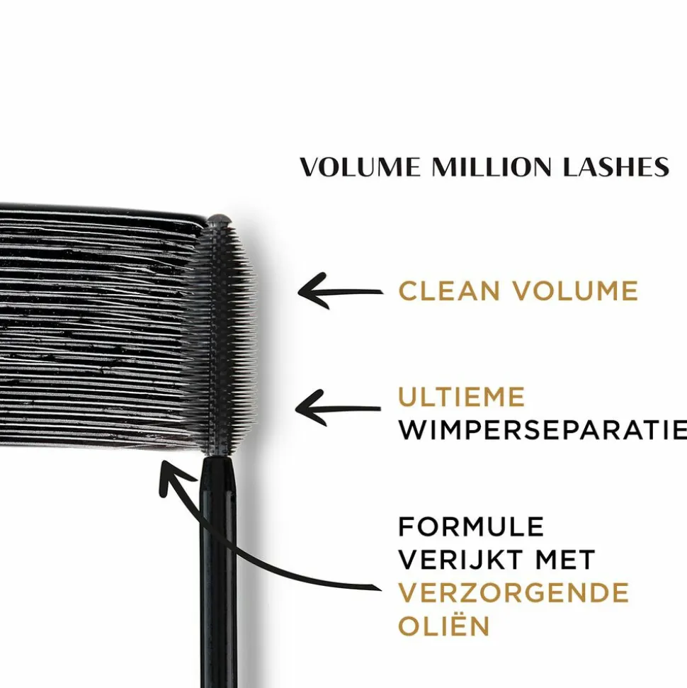 Ontdek de Volume Million Lashes Classic mascara met een nieuwe formule die verrijkt is met kasterolie voor natuurlijke volumieus uitziende wimpers die perfect zijn gesepareerd. Vrij van klontjes en ook beschikbaar in een waterproof variant! Onze enige echte Volume Million Lashes Classic mascara is terug met een formule die verrijkt is met verzorgende oliën. Het iconische mascaraborsteltje separeert de wimpers en lift de wimpers voor een gedefinieerde wimperseparatie zonder klontjes. De bouwbare formule bevat nu verzorgende kamille en zwarte orchidee oliën.
