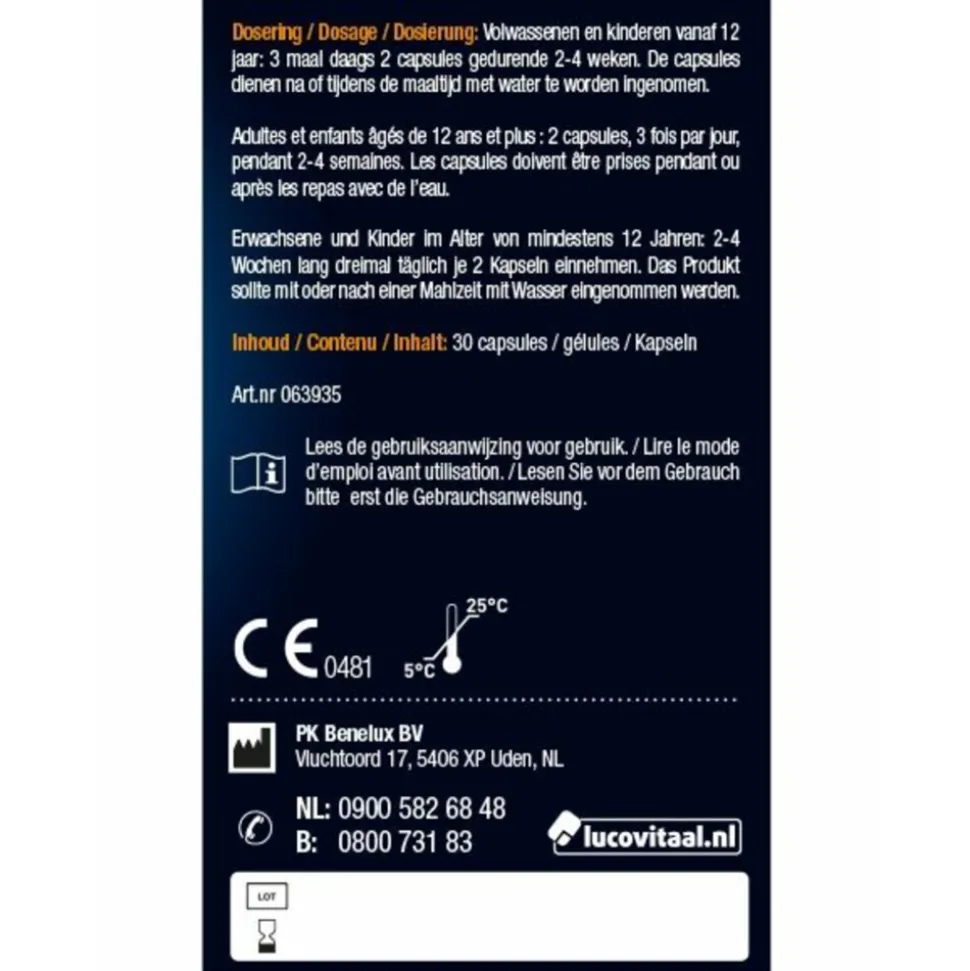 Volwassenen en kinderen vanaf 12 jaar: 3 maal daags 2 capsules gedurende 4 weken. De capsules dienen na of tijdens de maaltijd met water te worden ingenomen.