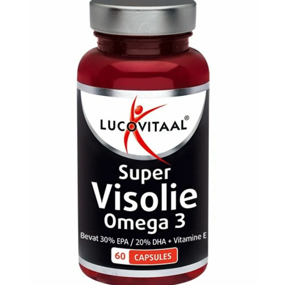 Super Visolie Omega 3 van Lucovitaal bevat een hoge concentratie omega 3 en vitamine E. De omega 3 vetzuren EPA en DHA hebben een positieve bijdrage aan de normale werking van het hart, *bij een dagelijkse inname van 250 mg EPA en DHA. Daarnaast is DHA, bij een dagelijkse inname van 250 mg, goed voor de hersenfunctie en het gezichtsvermogen. Vitamine E heeft een anti oxidatieve werking: het helpt lichaamscellen te beschermen tegen invloeden van buitenaf. EPA en DHA hebben een positieve bijdrage aan de normale werking van het hart – dragen bij tot de instandhouding van de normale bloeddruk – draagt bij tot de instandhouding van de normale hersenfunctie -draagt bij tot de instandhouding van een normaal gezichtsvermogen – Inname van DHA door de moeder draagt bij aan de normale ontwikkeling van de hersenen en de ogen van de foetus en bij borstgevoede zuigelingen. Lucovitaal Super Visolie Omega 3: