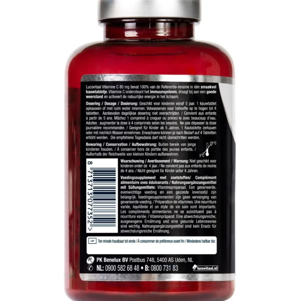 - Bevat 80 mg vitamine C per tablet