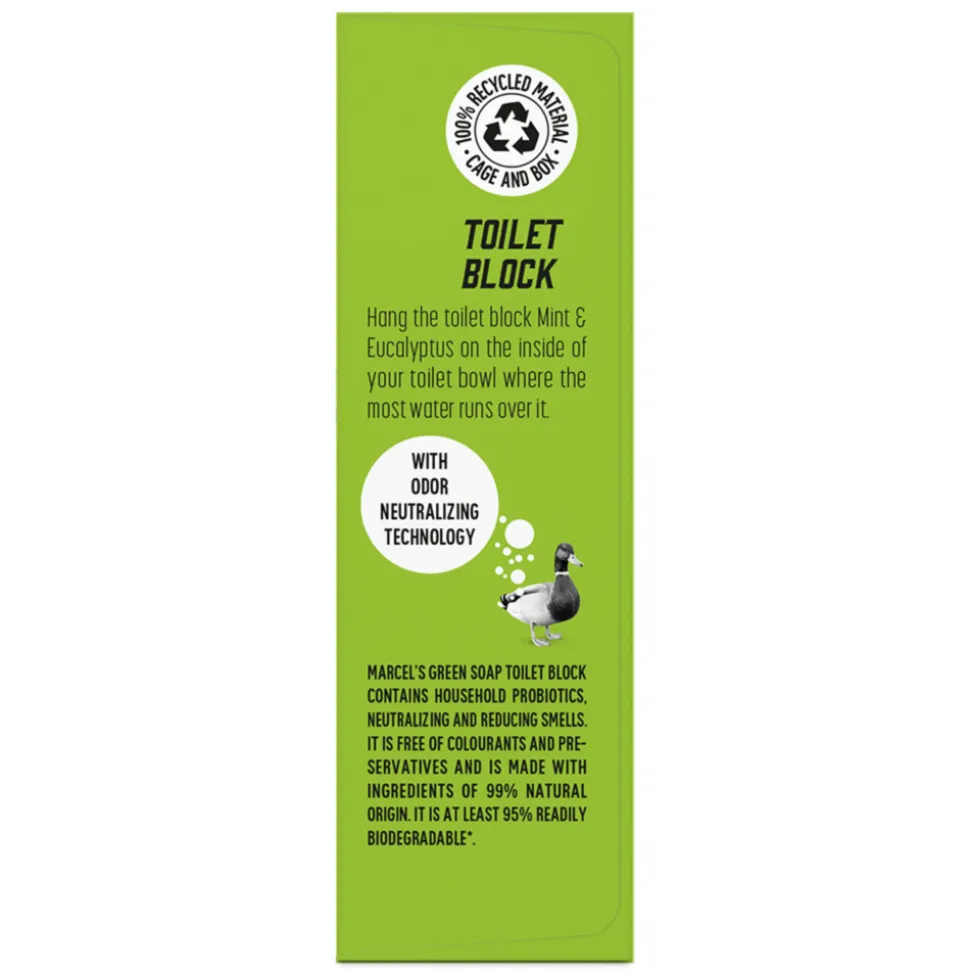 Marcel’s Green Soap toiletblok Citroen & Gember heeft een anti-kalk werking, is minstens 99% biologisch afbreekbaar en de houden en het doosje zijn van 100% gerecycled matriaal. Het toiletblok is goed voor zo’n 200 spoelbeurten. Zoals alle producten van Marcel’s Green Soap, bevat ons toiletblok geen kleurstoffen, parabenen, fosfaten, chloor, ammonia of zuren. Wél is het toiletblok minstens 99% biologisch afbreekbaar. Hiermee is het toiletblok veilig te gebruiken, ook wanneer je een septic tank hebt.