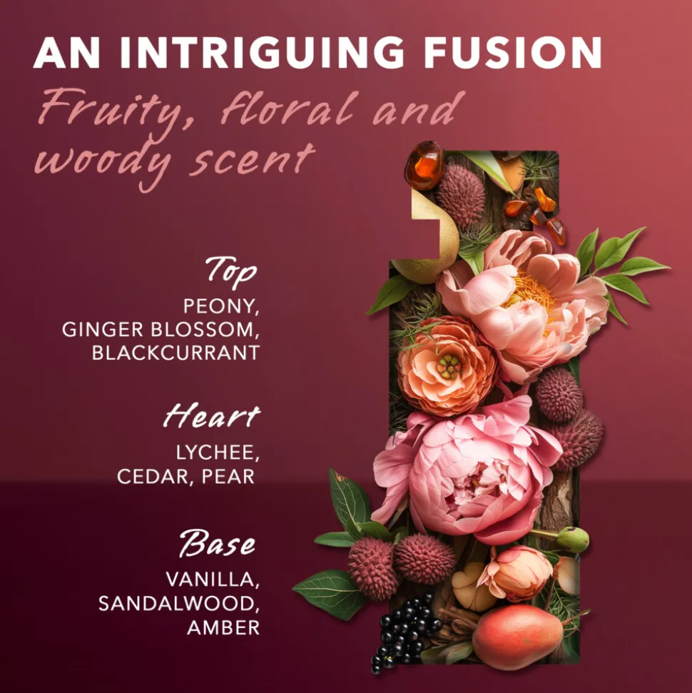 *Spray op de pulsatiepunten van het lichaam zoals de hals, het decolleté, de polsen en de enkels, om de intensiteit van de geur kracht bij te zetten.