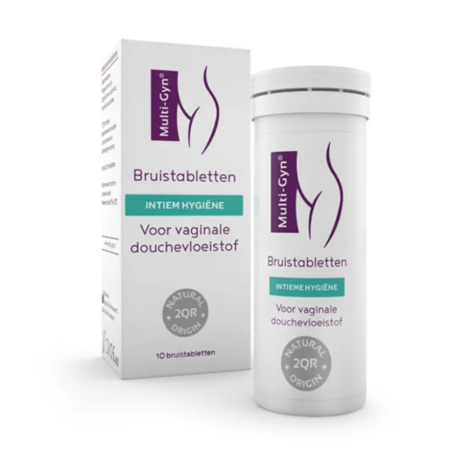 Multi-Gyn Intieme Hygiëne Bruistabletten voor Vaginale Douchevloeistofzijn bruistabletten die, opgelost in lauw water, een milde douchevloeistof creëren die geschikt is voor gebruik met een vaginale douche. De tabletten bevatten uitsluitend natuurlijke ingrediënten en zijn parfumvrij. Multi-Gyn bruistabletten zijn ideaal voor de algemene vaginale hygiëne. Of voor intensieve vaginale hygiëne in geval van overmatige of onaangenaam ruikende afscheiding, jeuk, irritatie en een branderig gevoel. Dit artikel bevat 10 bruistabletten als navulling van de vaginale douche.