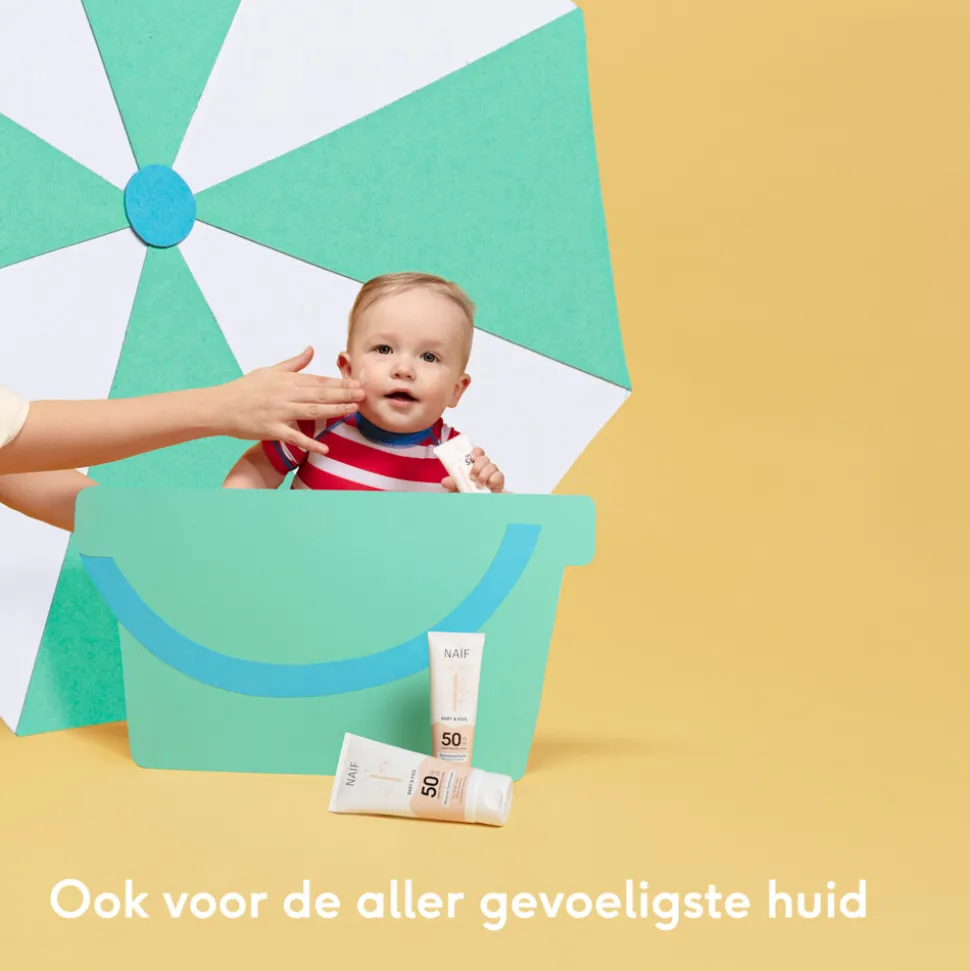Vernieuwde formule! Naïf Minerale Zonnebrandcrème SPF50 biedt direct hoge UVA- + UVB-bescherming voor de huid van baby & kids. Doordat we gebruik maken van een minerale filter is er geen inwerktijd en kun je dus gelijk naar buiten. Ideaal. Ook zijn de producten water-resistent. Na het zwemmen wel weer even smeren graag. We adviseren baby’s met name het eerste jaar zoveel mogelijk uit de zon te houden. Mocht het toch voorkomen, is Naïf Zonbescherming ook veilig te gebruiken voor de gevoelige huid van pasgeboren baby’s. Alle producten van Naïf zijn gemaakt met natuurlijke ingrediënten, vegan en dermatologisch getest. Ook is alle zonbescherming koraalvriendelijk en bevat het geen microplastics. Koraalvriendelijk betekent voor ons dat we de volgende ingrediënten niet gebruiken: oxybenzone, octinoxate, octocrylene, avobenzone.