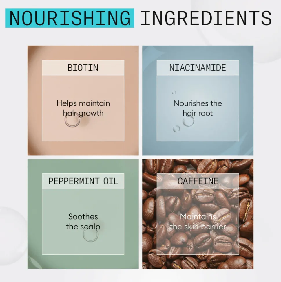Shampoo: Aqua/Water/Eau, Sodium Laureth Sulfate, Sodium Lauryl Sulfate, Sodium Chloride, PPG-2 Hydroxyethyl Coco/Isostearamide, Citric Acid, Salicylic Acid, Mentha Arvensis Leaf Oil, Mentha Piperita (Peppermint) Oil, Tetrasodium EDTA, Trisodium Ethylenediamine Disuccinate, Methylparaben, Polyquaternium-10, Propylene Glycol, Sodium Benzoate, Sodium Hydroxide, Limonene, Camellia Sinensis Leaf Extract, Cystine Bis-PG-Propyl Silanetriol, Niacinamide, Panthenol, Biotin, Lecithin, Tocopheryl Acetate, Foeniculum Vulgare (Fennel) Fruit Extract, Blue 1 (CI 42090), Acer Saccharum (Sugar Maple) Extract, Citrus Limon (Lemon) Peel Extract, Saccharum Officinarum/Sugar Cane Extract/Extrait de canne a sucre, Vaccinium Myrtillus Leaf Extract, Faex Extract/Yeast Extract/Extrait de levure, Propylparaben, Phenoxyethanol, Citrus Aurantium Dulcis (Orange) Fruit Extract, Maltodextrin, Potassium Sorbate, Sodium Citrate, Ethylparaben, Butylparaben, Sodium Xylenesulfonate.