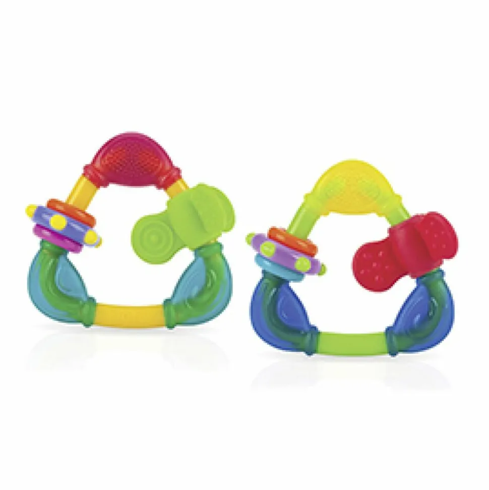 Deze driehoek bijtringen van Nuby verminderen de pijn bij het doorkomen van tanden. Dankzij de verschillende materialen en bijtoppervlakken is dit kleurrijke bijtspeeltje tevens een klein avontuurtje in de mond van je baby. Er zijn twee kleurcombinaties beschikbaar. Er is geen kleurkeuze mogelijk.
