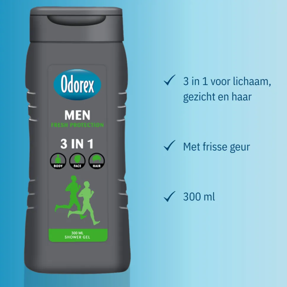 Odorex Douchegel For Men Fresh Protection is een 3-in-1 douchegel voor het gezicht, lichaam en haar van mannen. De douchegel laat een frisse geur achter en is dermatologisch getest.