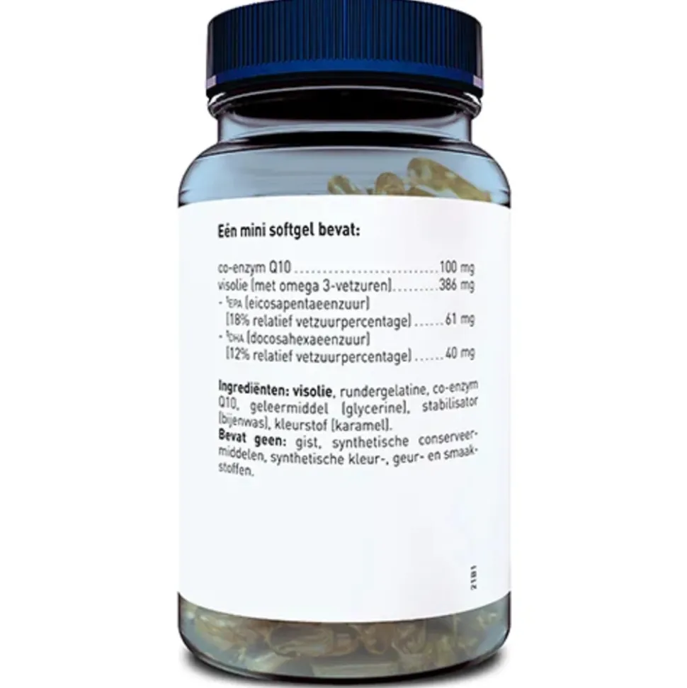 Visolie, rundergelatine, co-enzym Q10, geleermiddel (glycerine), stabilisator (bijenwas), kleurstof (karamel).