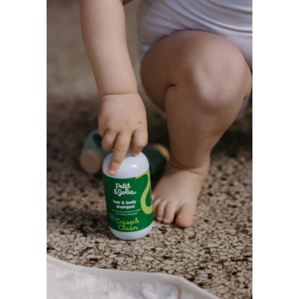 Petit&Jolie® Haar&Body Shampoo reinigt en verzorgt de huid en het haar op een milde wijze. De speciale samenstelling zorgt voor een soepele huid en voorkomt uitdroging. De shampoo is geschikt voor kinderen van 0 tot 10 jaar met een droge – en gevoelige huid.