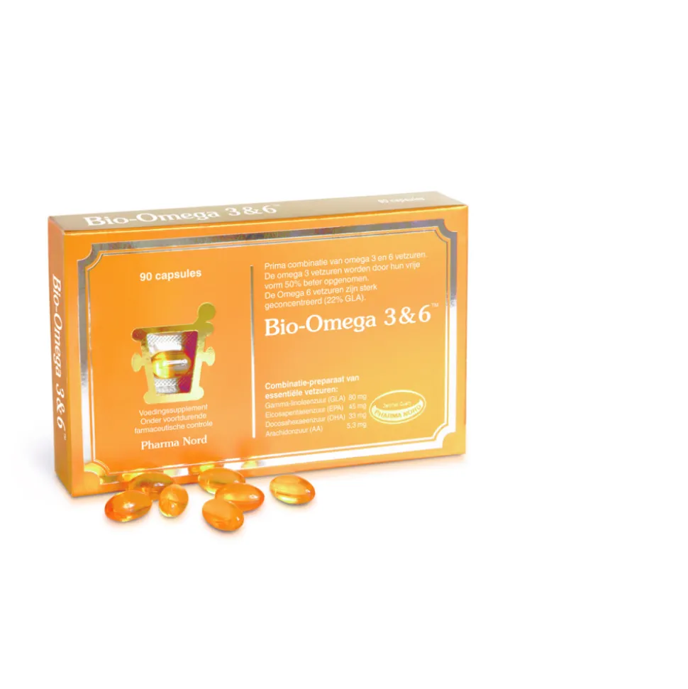 Pharma Nord Bio-Omega is een voedingssupplement met de essentiële vetzuren omega 3 en 6. Bio-Omega 3 & 6 bevat de actieve omega-3 vetzuren EPA en DHA uit visolie en het plantaardige omega-6 vetzuur GLA uit de Bernagie. De vorm van vrije vetzuren zorgen voor een goede opname door het lichaam.