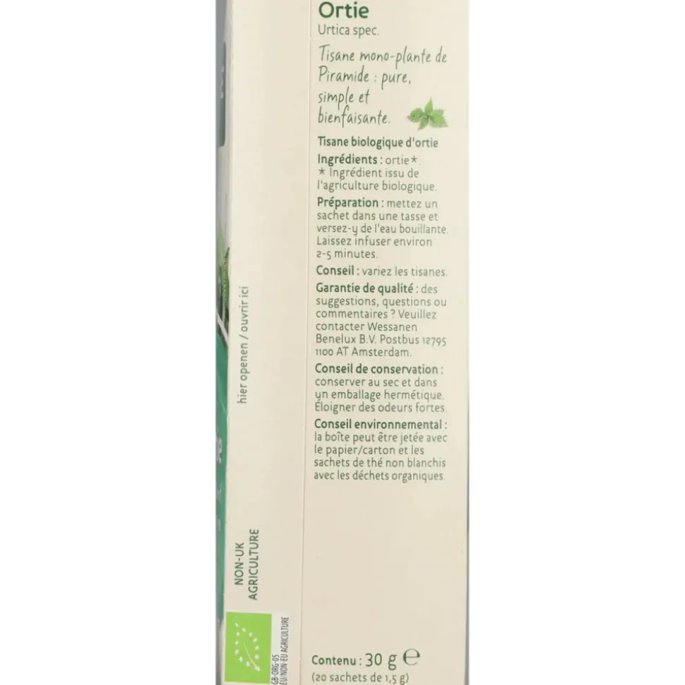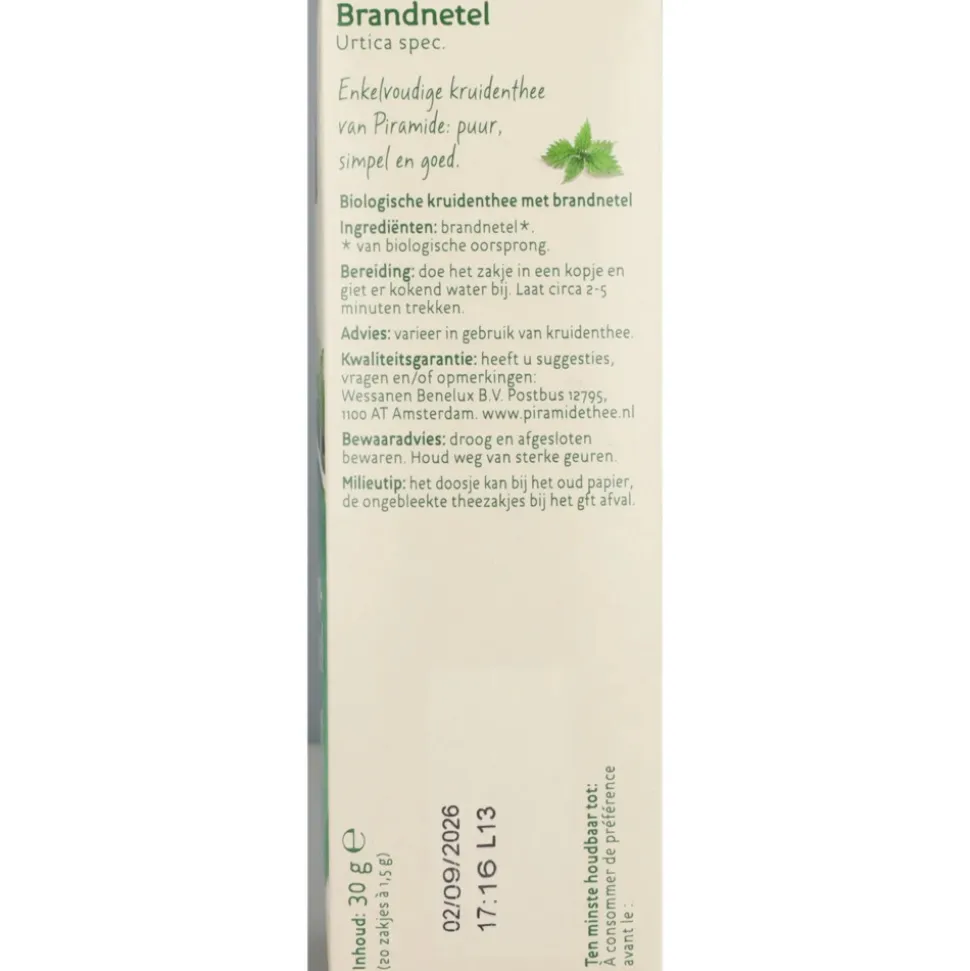 De biologische kruidenthee met Brandnetel van Piramide is van biologische oorsprong en ondersteunt de stofwisseling.