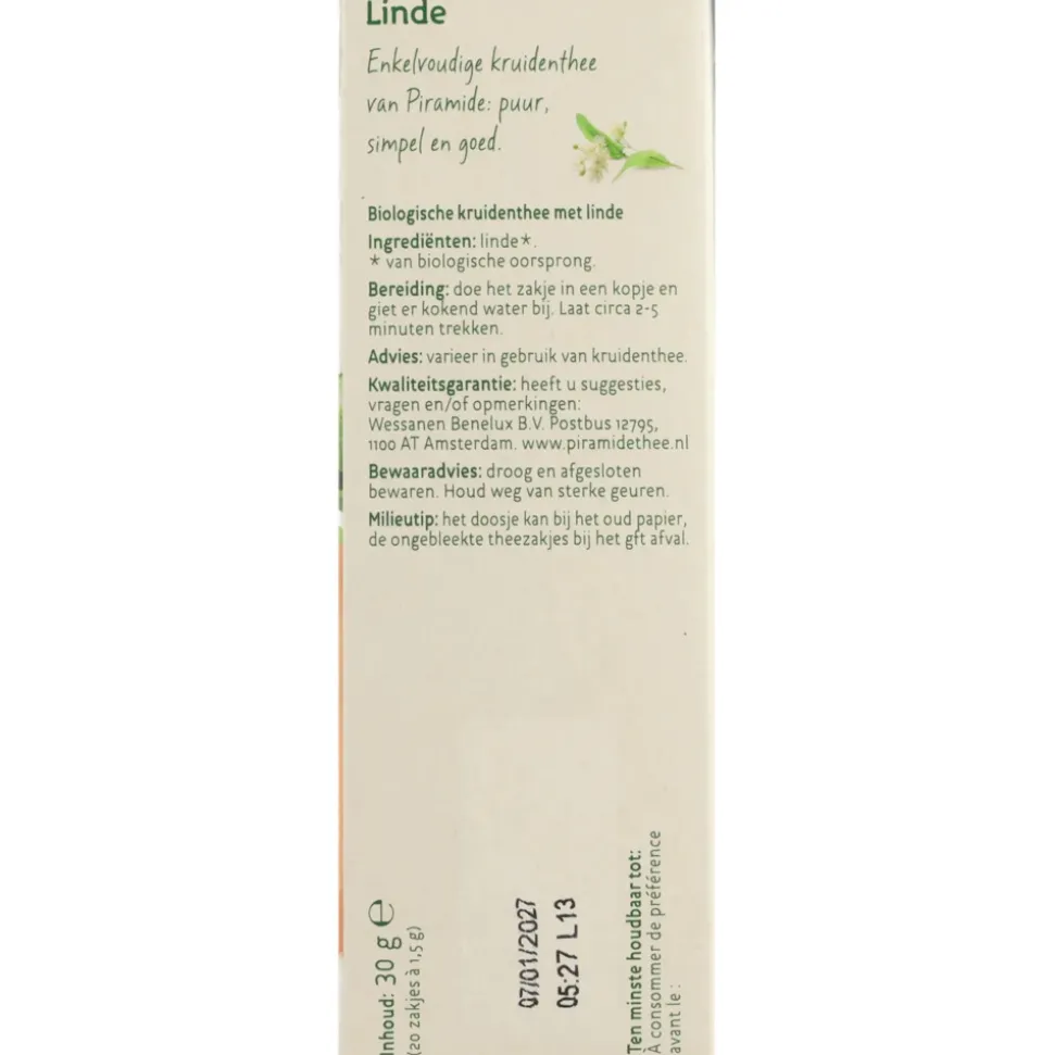 De biologische kruidenthee met Lindebloesem van Piramide is van biologische oorsprong en draagt bij aan een goede vochtbalans.