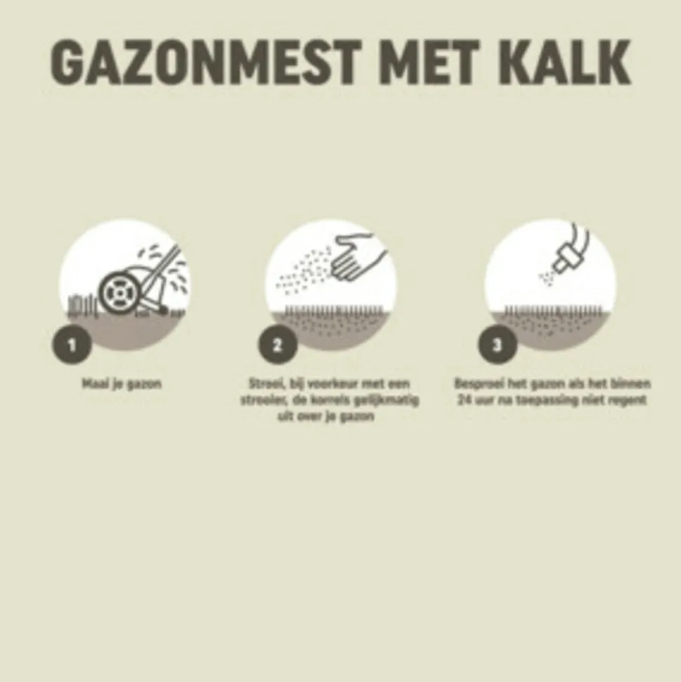 - Besproei het gazon als het binnen 24 uur na toepassing niet regent
