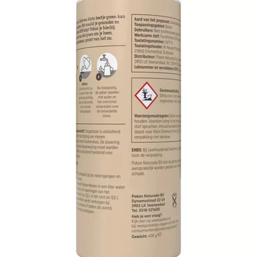 Pokon Tegen Mieren Korrels helpt je snel en effectief van mieren af. Deze krachtige formule bestrijdt niet alleen losse mieren, maar het hele mierennest. Je kunt de korrels direct strooien rond de nestingangen of oplossen in water en gieten in en rondom het nest. Hierdoor wordt het probleem bij de bron aangepakt. De korrels zijn ook geschikt voor gebruik in het gazon, zodat je tuin vrij blijft van mieren.