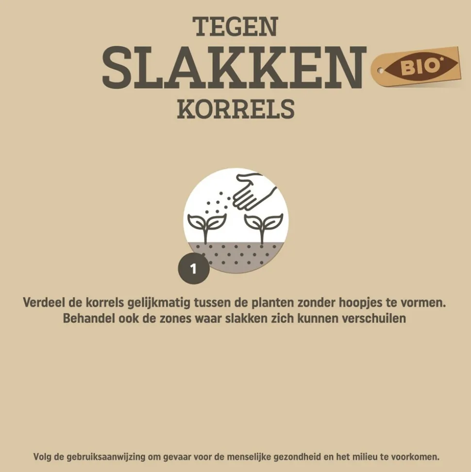 Pokon Bio Tegen Slakken Korrels bestrijdt alle soorten naaktslakken op sierplanten, kuipplanten en in moestuin. Na het eten van de korrels verliezen slakken hun eetlust en trekken ze zich terug naar hun schuilplaats om te sterven. De slakrestanten worden opgenomen in de ecologische kringloop. Huisdieren, volgens en egels ondervinden geen schade van het eten van deze dode slakken. Slakken kun je het beste behandelen in de periode maart t/m september, zodra de eerste slak of slakkenvraag wordt waargenomen. De korrels bij voorkeur in de avonduren uitstrooien omdat slakken voornamelijk ’s nachts actief zijn. Maximaal 4 toepassingen per jaar. Er is geen wachttijd tussen behandeling van naaktslakken en oogst van groenten en fruit.