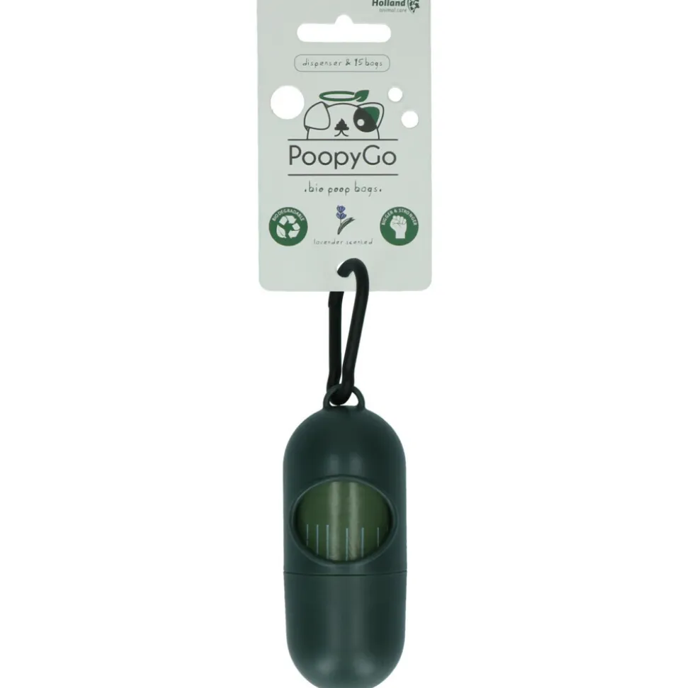 - Mooie dispenser gevuld met 1 rolletje (15 zakjes) PoopyGo poepzakjes