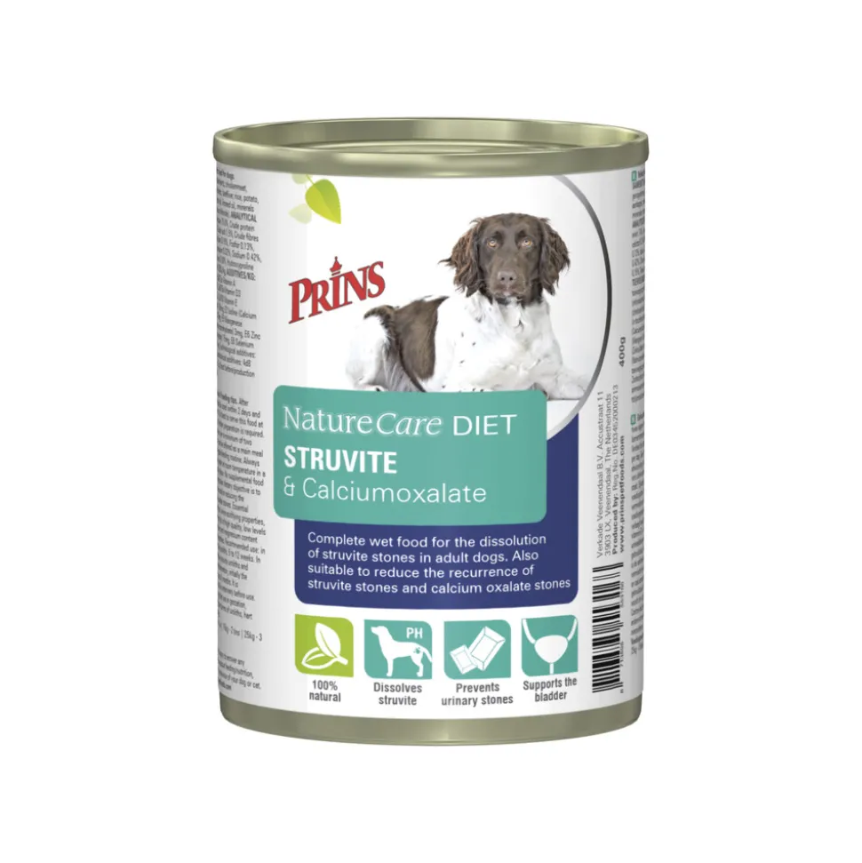Prins NatureCare Diet Hondenvoer Nat Struvite & Calciumoxalate is een natvoeding speciaal voor honden met blaasproblemen. Deze speciale dieetvoeding is ontwikkeld in samenwerking met dierenartsen en heeft zowel een oplossend als preventief karakter. Deze dieetvoeding is geschikt voor het oplossen van struvietblaasgruis en ter voorkoming van herhaalde struviet- en calciumoxalaatblaasgruis.