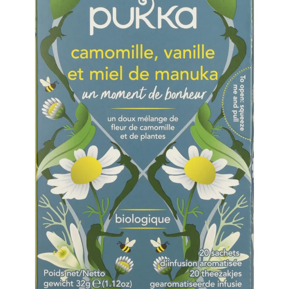Kalmerend en verzachtend; een gift uit de natuur. Zuiver en eerlijk. De Pukka theeën zijn gebaseerd op de helende kracht van de aloude Ayurvedische leer van evenwicht en harmonie. Alle ingrediënten zijn biologisch en ethisch verantwoord geproduceerd. Voor ieder moment en elke stemming of behoefte is er een theevariant. Deze Pukka thee combineert kalmerende kamillebloesem met het exotische zoet van vanillestokjes en de gouden warmte van Manuka honing. Heerlijk voor een rustmoment tijdens de hectiek van alledag.