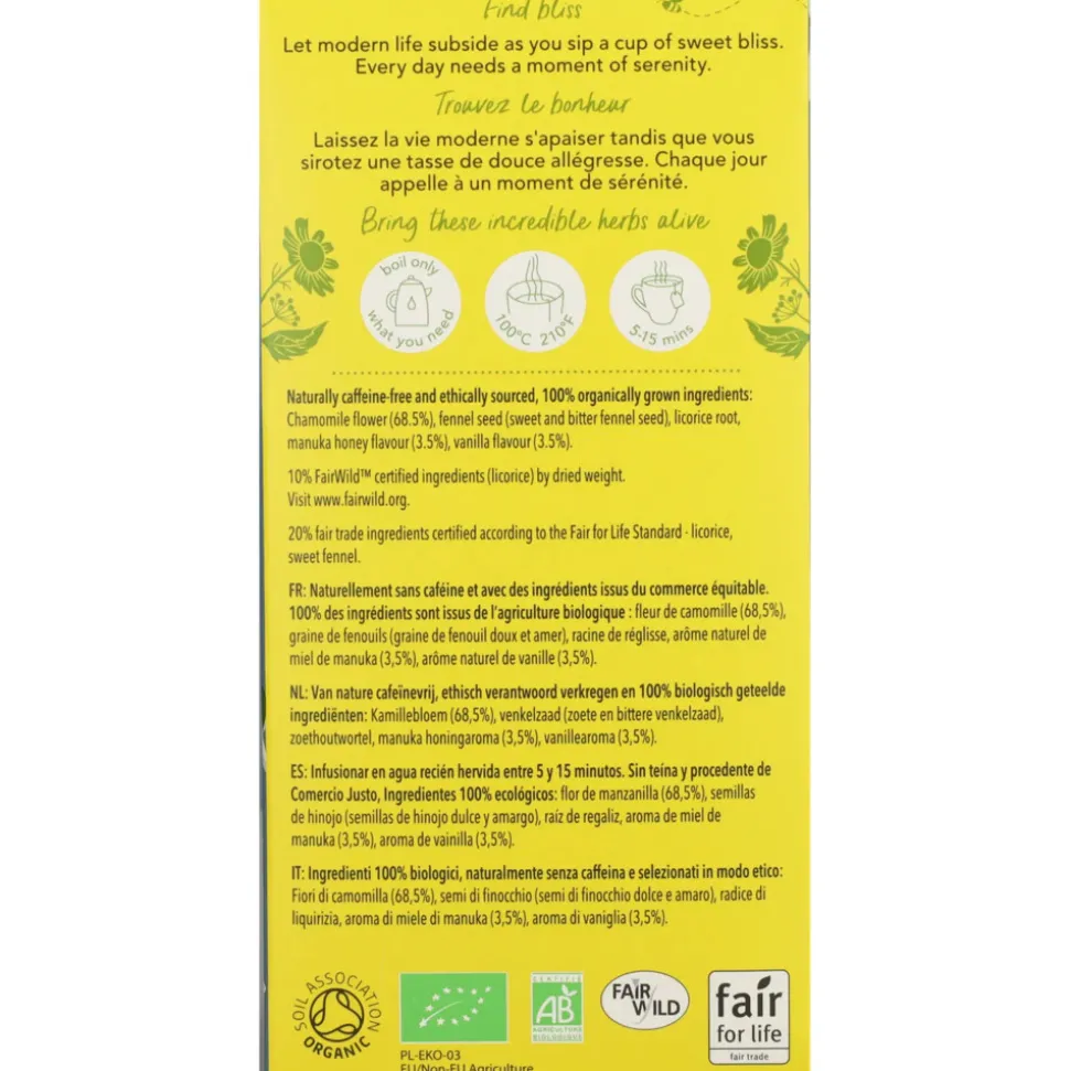 - Een blend met kamille, venkel, zoethout, manuka honing en vanille