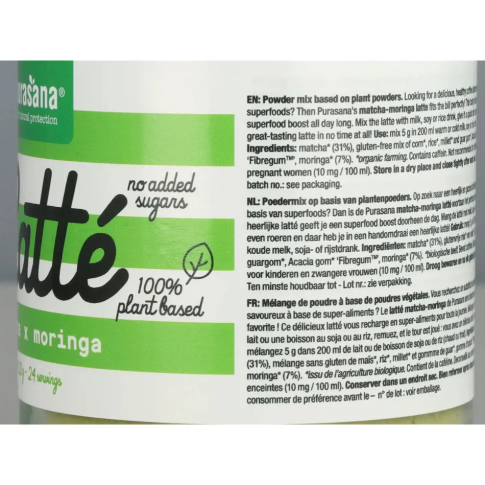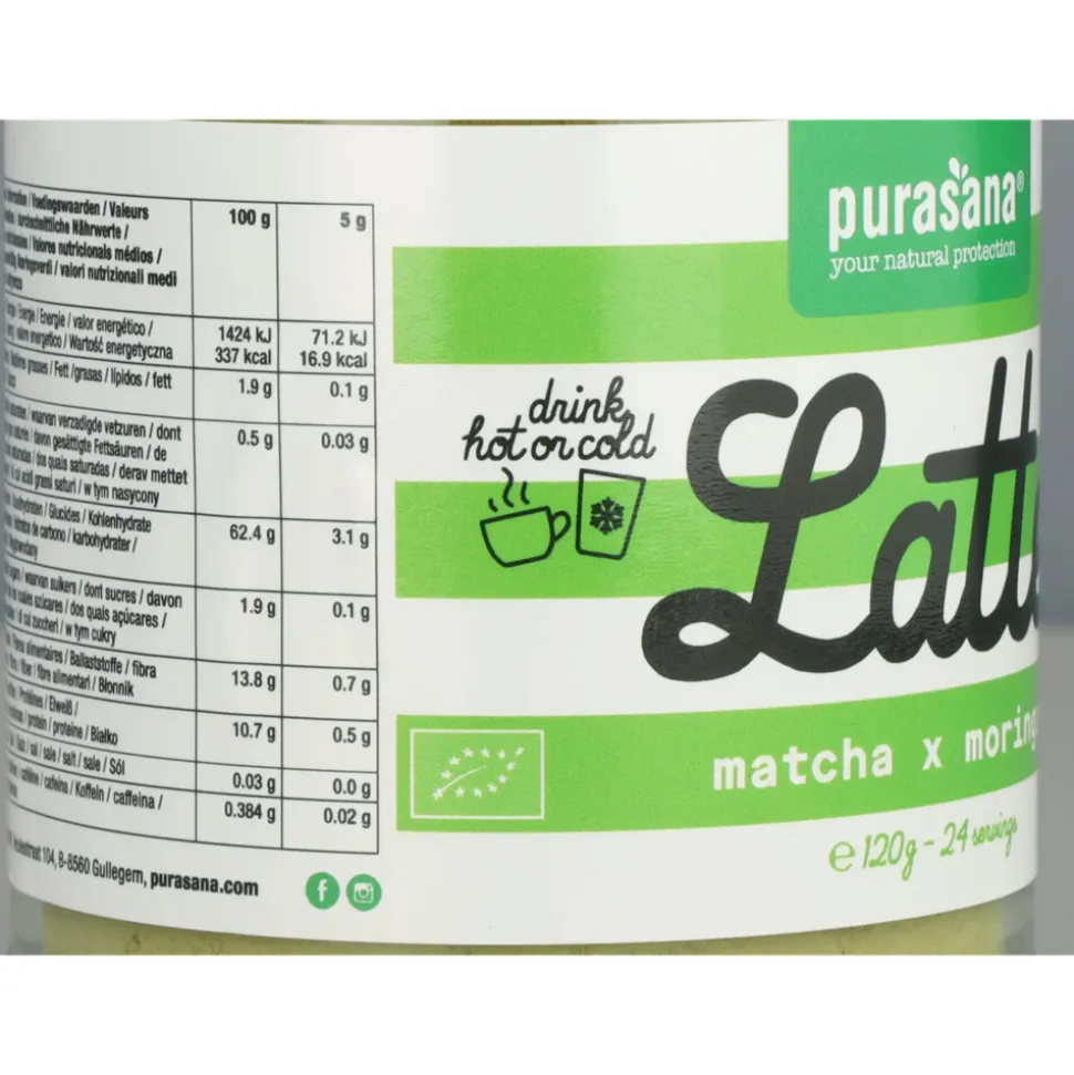 Purasana Matcha Moringa Latté Bio is een heerlijke, biologische vervanging voor koffie, op basis van superfoods. Een lekker alternatief voor dagelijks gebruik!