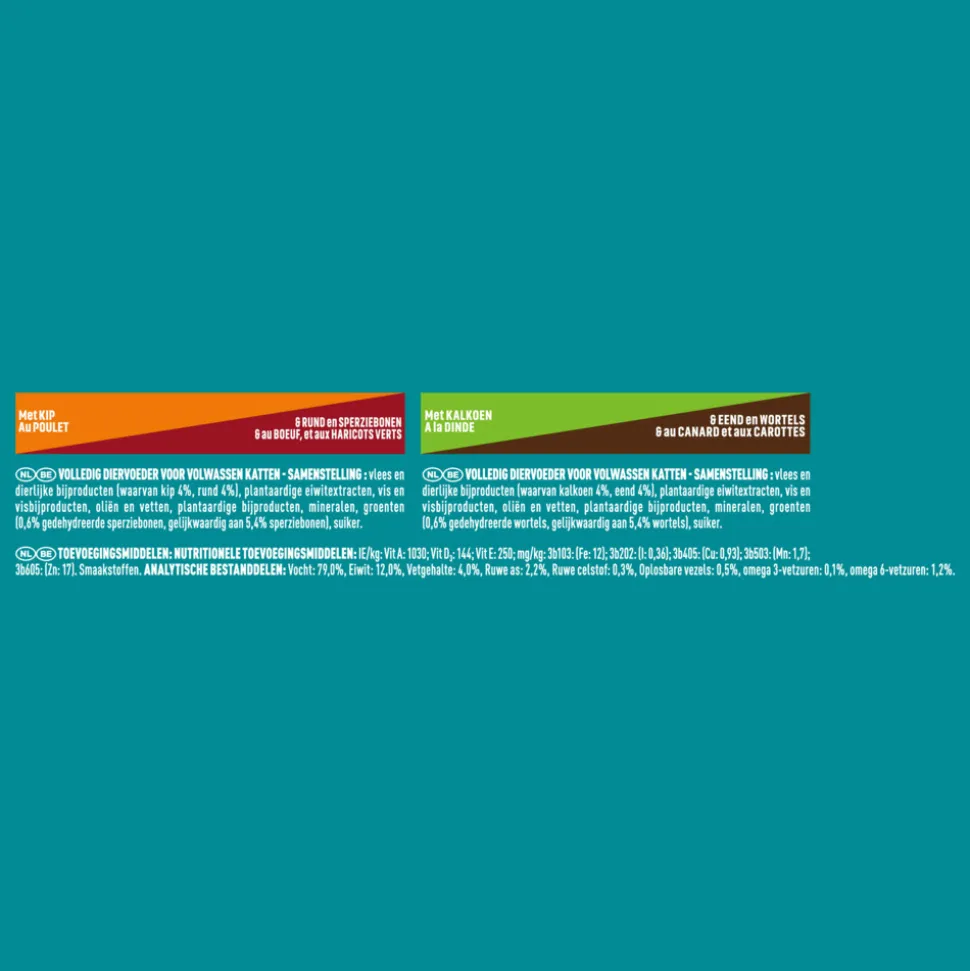 Toevoegingsmiddelen Fijne Malse reepjes in Saus met Kalkoen & Eend en Wortelen: