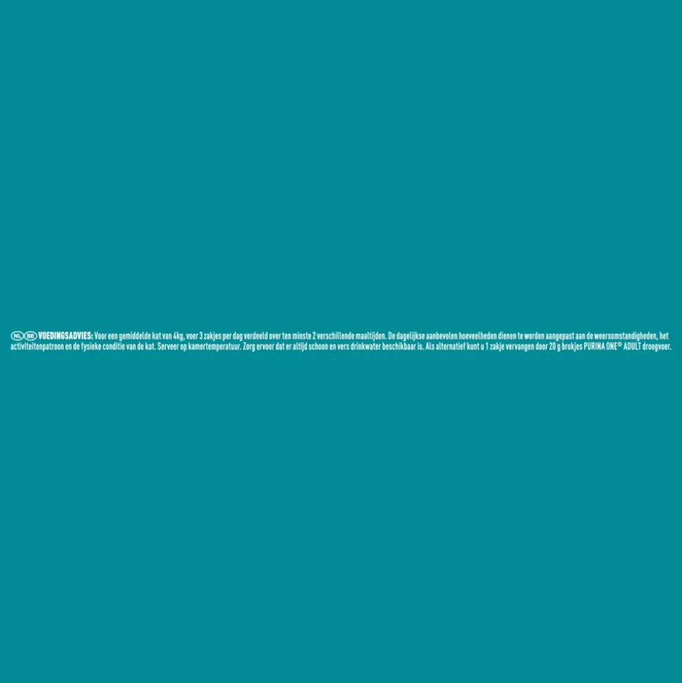 Als alternatief kan je dagelijks 2 zakjes geven gecombineerd met 30 g droge brokjes Purina One Adult.