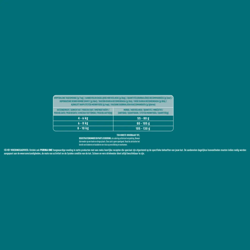 Purina ONE Kattenvoer Sterilcat Kip – Tarwe is speciaal ontwikkeld voor gesteriliseerde volwassen katten. Het bevat een unieke formule met heilzame bacteriën die de natuurlijke afweer van je kat versterken. Na sterilisatie of castratie helpt het voer een gezonde stofwisseling te behouden en ondersteunt het gewichtsbeheersing door een verhoogde verhouding eiwitten en vetten. De uitgebalanceerde mineralen bevorderen gezonde urinewegen, terwijl het de vorming van tandsteen tot 40% vermindert. Dankzij de hoogwaardige ingrediënten heeft je kat een hoge opname van voedingsstoffen voor een gezonde levensstijl.