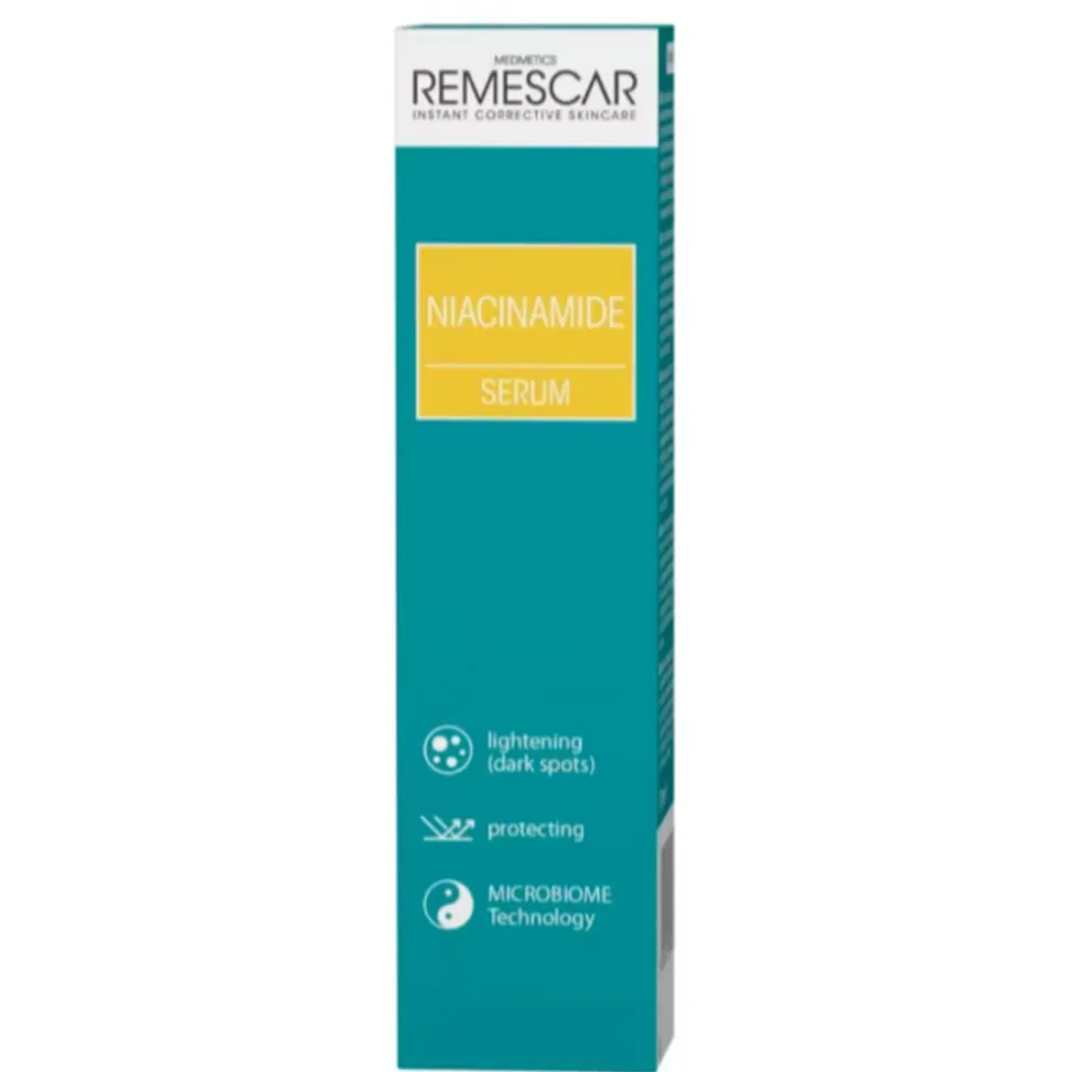 Het Niacinamide Serum van Remescar reguleert pigmentvormende cellen waardoor de kans op hyperpigmentatie afneemt. Pigmentvlekken gaan zichtbaar verminderen én de huid is egaler dan voorheen. Door z’n anti-inflammatoire (ontstekingsremmende) en kalmerende eigenschappen is het Niacinamide Serum van Remescar geschikt voor personen met acne, rosacea of rode vlekken.