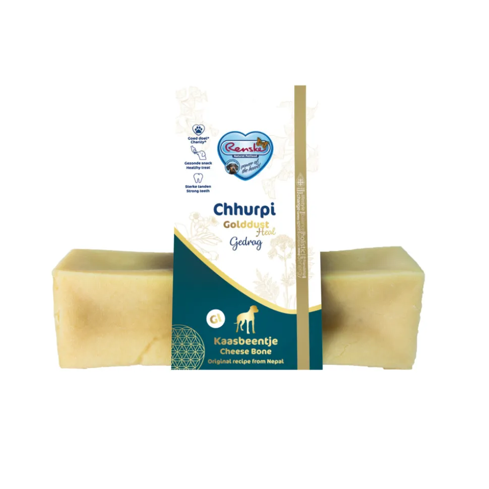 De Renske Chhurpi is 100% natuurlijk, vegetarisch, gluten- en graanvrij. Een van de grote voordelen is dat deze snack een hoge dichtheid heeft waardoor de hond meer moeite moet doen om de chhurpi zacht te kauwen. Hierdoor is je hond verzekerd van urenlang kauwplezier! Daarnaast is het vele kauwen goed voor het gebit en kan dit vorming van tandplak aanzienlijk verminderen.