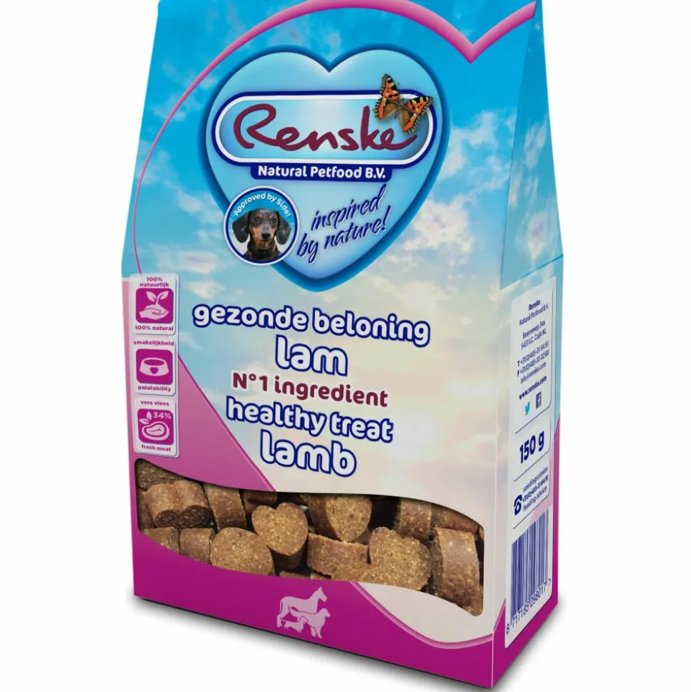 De beloningen hebben een hartjesvorm en bevatten als hoofdingredient minimaal 34% lam. Renske Gezonde Beloning Hartjes worden gemaakt van één eiwitbron, zo kunnen ook honden met een allergie of intolerantie voor een bepaalde eiwitbron genieten van de beloningen. Daarnaast zijn de beloningen vrij van zout en suiker en zijn 100% natuurlijk met toegevoegde vitamines en mineralen.