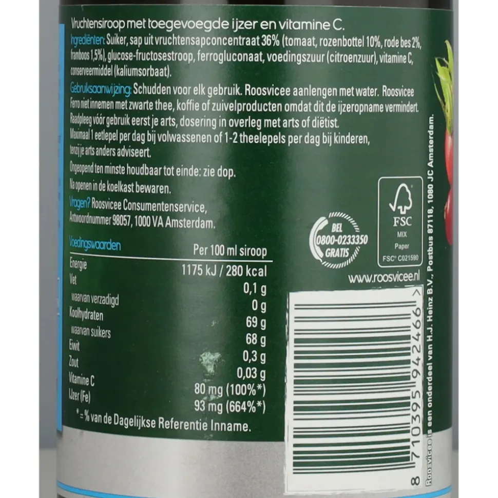 Deze Roosvicee wordt door ferrofluconaat die erin is toegevoegd snel ijzer toegevoegd in het bloed.