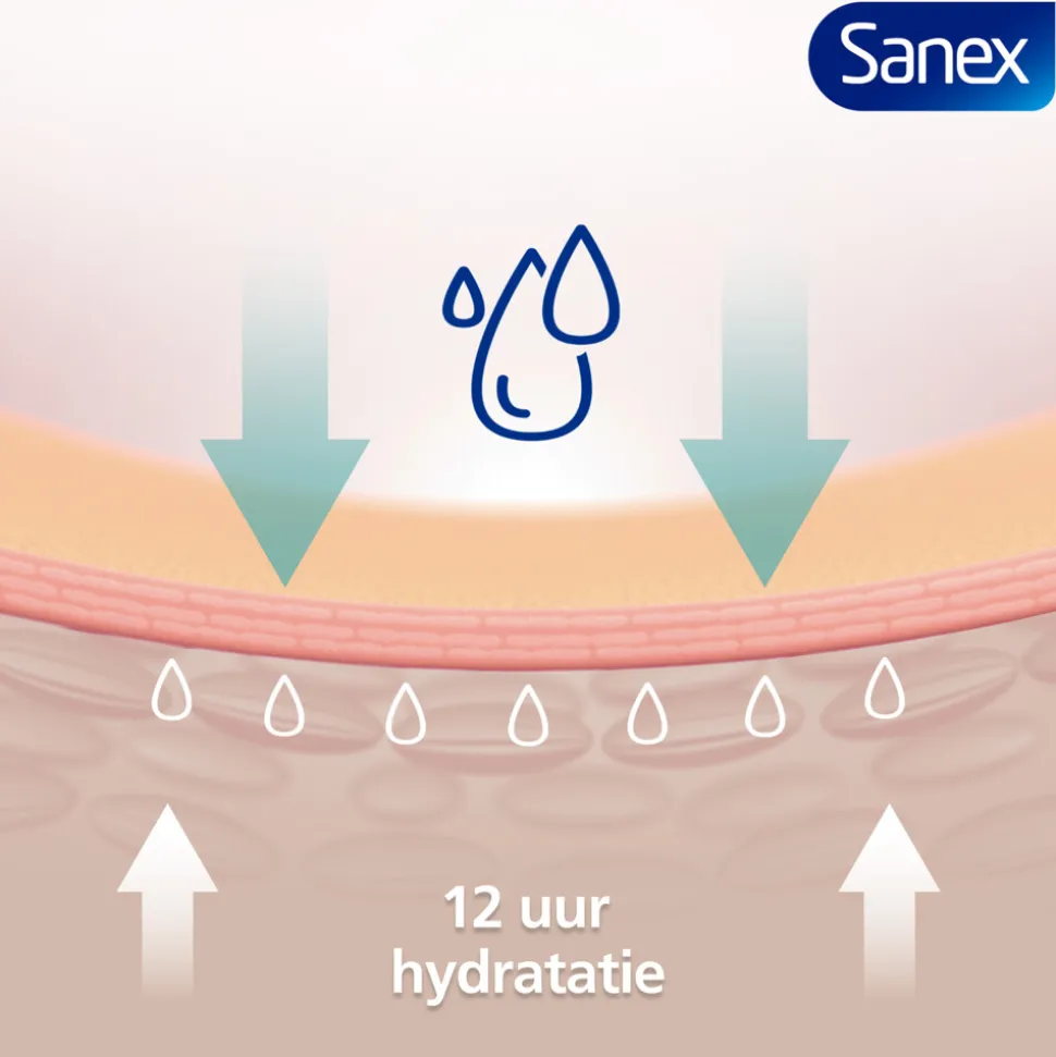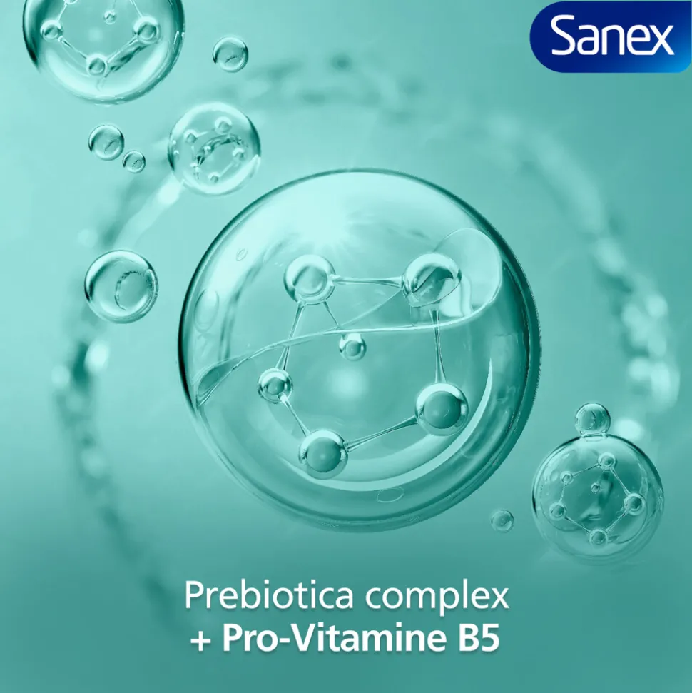 Sanex Expert Skin Health Agave Revitalizing Douchegel 400ml is speciaal ontwikkeld om je huid op milde wijze te hydrateren en te versterken. De formule bevat een natuurlijk prebiotisch complex op basis van agave-inuline en pro-vitamine B5. Het helpt de natuurlijke balans van je huid te ondersteunen en beschermt tegen uitdroging. De frisse, hypoallergene geur van bloementhee zorgt voor een aangename douche-ervaring. Deze vegan douchegel bestaat voor 92% uit ingrediënten van natuurlijke oorsprong* en bevat geen SLS**. Je huid voelt zacht, gehydrateerd en verzorgd aan – tot wel 12 uur lang.