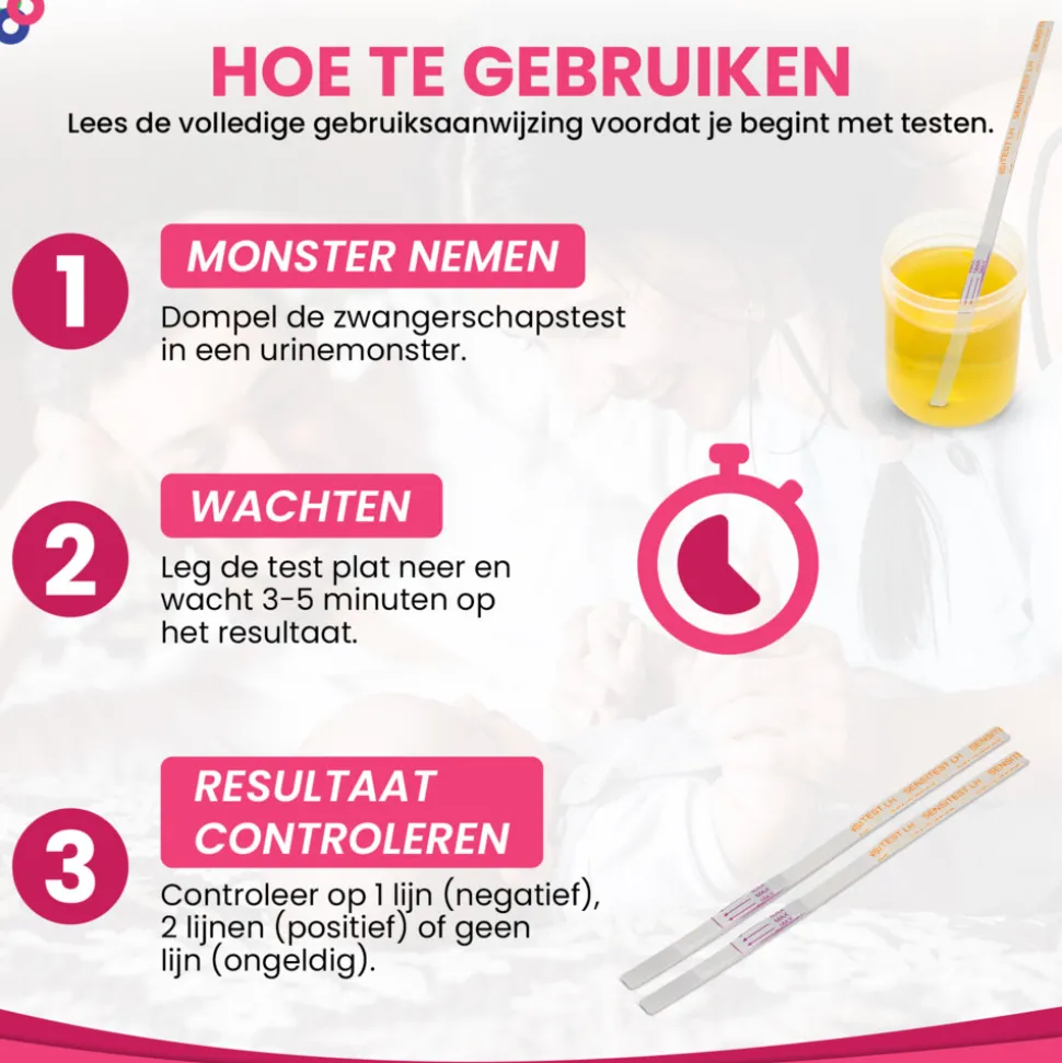 Als jij vruchtbaar bent geeft Sensitest Ovulatietest dipstick 2 streepjes. Buiten je vruchtbare periode geeft deze test maar 1 streepje. Als je graag zwanger wilt worden, dan vertelt de Sensitest ovulatietest je precies wanneer je de grootste kans hebt om zwanger te worden.