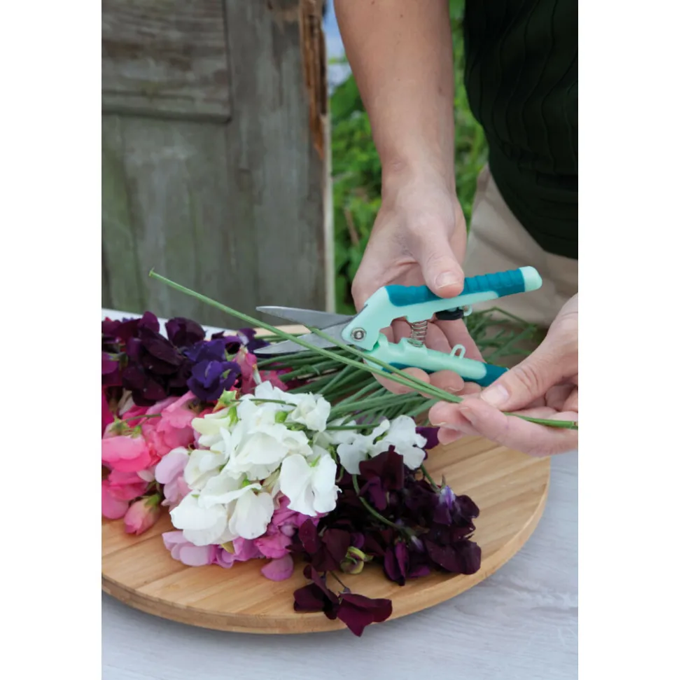 Deze oogstschaar heeft soft grip handvaten en voelt licht aan. Uitermate geschikt om snijbloemen te knippen en handig voor het oogsten van groentes.
