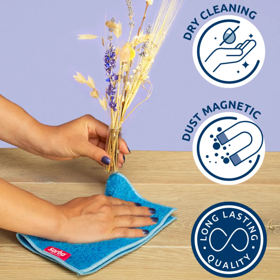 De Sorbo Smart Catcher is een unieke microvezeldoek met een speciale ultramicrovezeltechnologie. Dankzij deze technologie neemt de doek zowel stof en vuil als haren en kruimels op. De doek is te gebruiken in combinatie met stofwissersystemen.