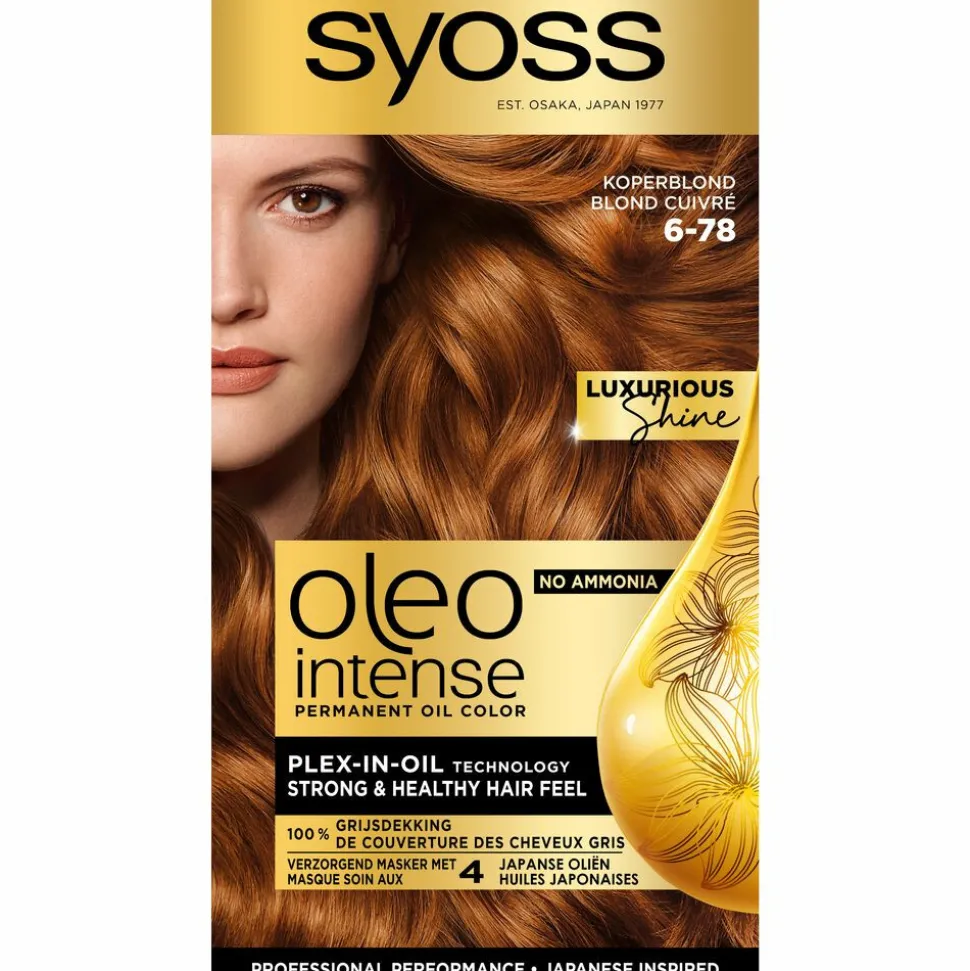 Ontdek Syoss Oleo Intense, een permanente haarkleuring met olie-formule en zonder ammoniak. Voor een superieure verzorging en een langdurig kleurresultaat met professionele grijsdekking.