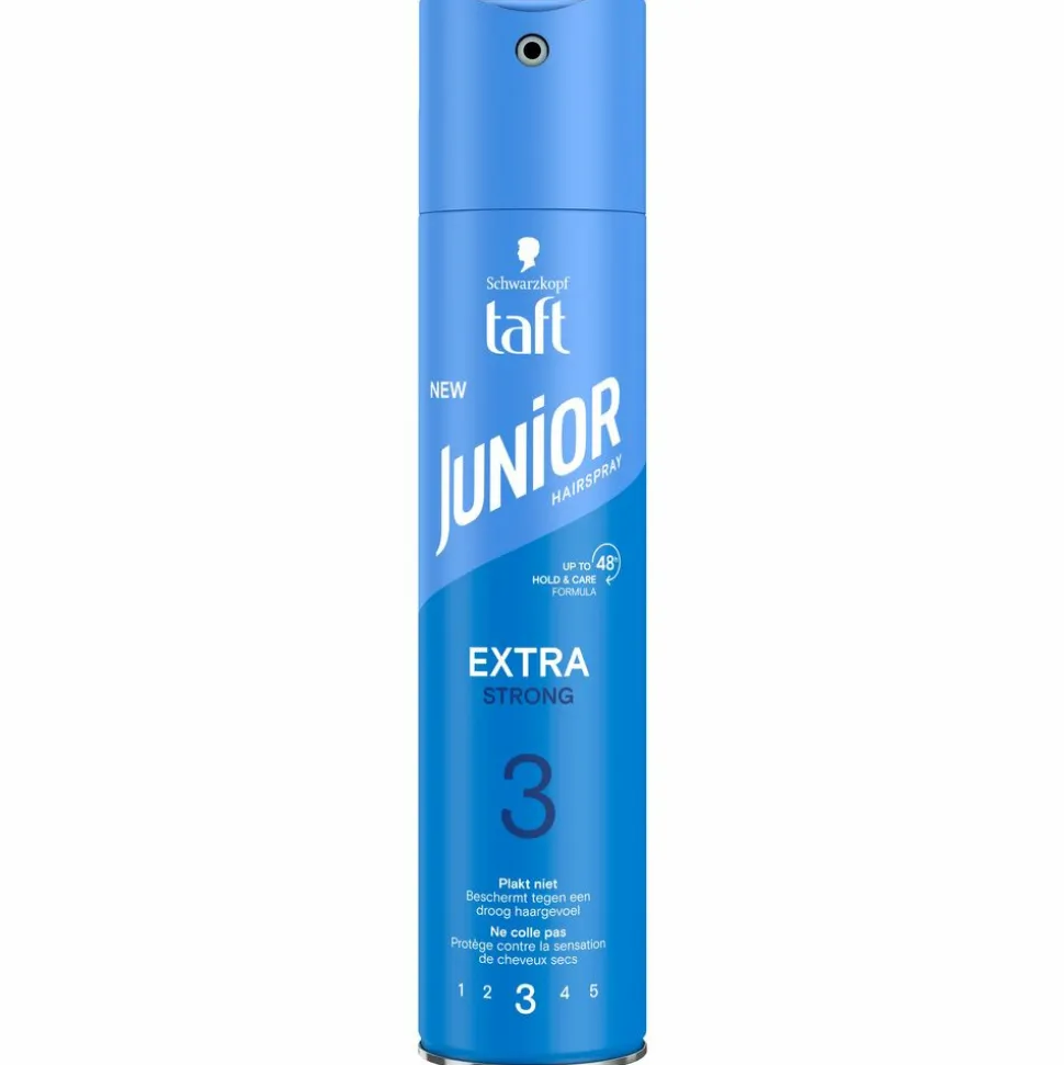 Taft Junior Extra Strong Hairspray geeft extra sterke fixatie en houdt je haar langdurig en perfect in model. Daarnaast versterkt de spray je haar.
