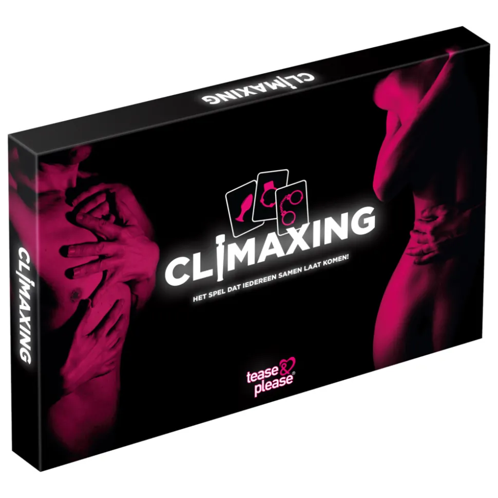 Beleef samen een intiem avontuur met Climax! Dit unieke spel nodigt jou en je partner uit om de spanning van samen spelen en winnen te ontdekken. Verken elkaars voorkeuren en antipathieën om het ultieme hoogtepunt te bereiken. Het draait allemaal om timing: kom samen tot een hoogtepunt, want als een van jullie te vroeg piekt, kost dat punten. De sleutel tot de overwinning ligt in het stimuleren van beide spelers, want alleen samen kun je winnen! Elke beurt trek je een nieuwe actiekaart, die een positieve, negatieve of neutrale reactie kan uitlokken. Maak keuzes op basis van wat je hebt geleerd en scoor punten voor de juiste beslissingen, maar wees voorzichtig! Climax niet te vroeg, want het spel eindigt pas als beide spelers hun hoogtepunt hebben bereikt. Climax is een uniek spel vol intimiteit en plezier, waarbij elke sessie kan worden aangepast aan de voorkeuren van de spelers.
