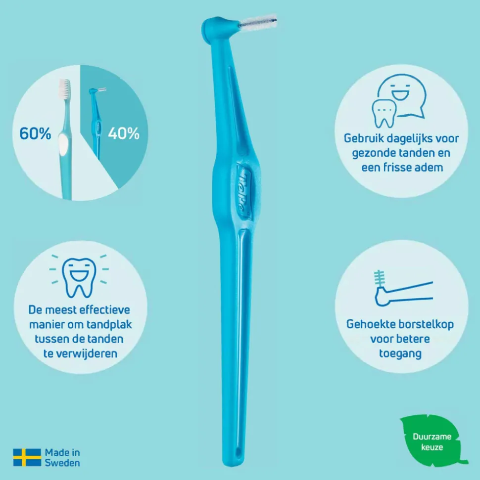 De TePe Angle interdentale ragers zijn ontworpen om de openingen tussen je tanden en kiezen te reinigen. Plekken waar je met een gewone tandenborstel meestal niet bij kan komen. Een rager kan gebruikt worden om tandplak en bacteriën tussen tanden, implantaten, kronen en bruggen optimaal te verwijderen. Bovendien heeft dit product een langer handvat, waardoor je makkelijker bij je achterste tanden en kiezen kan komen. Op deze manier verminder je de kans op tandvleesontstekingen, gaatjes en een slechte adem.