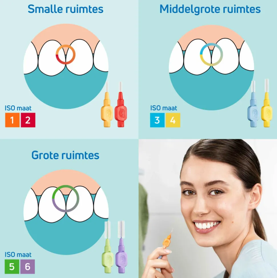 De lichtoranje rager van 0,45 mm is geschikt voor een gebit met smalle openingen tussen de tanden.