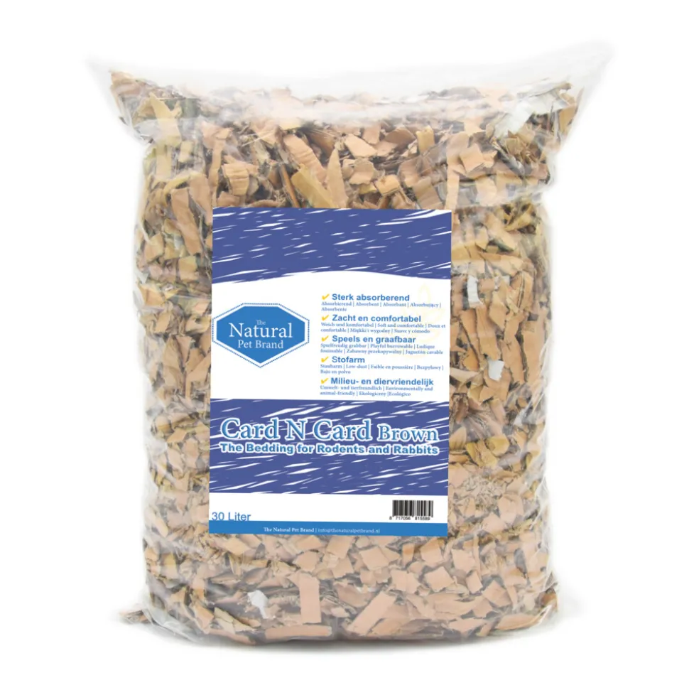 Card N Card Brown biedt een hoogwaardige bodembedekking gemaakt van stukken karton, speciaal ontworpen om als toplaag te worden gebruikt bovenop een basisbedekking zoals Cotton N Cotton, Cotton N Fibre, Cotton N Hemp of Cotton N Flax. Deze 100% stofvrije bodembedekking is perfect voor huisdieren met gevoelige luchtwegen of allergieën, en biedt een veilige, comfortabele en speelse omgeving. De kartonstukjes zijn ideaal voor ratten en muizen, en zijn ook geschikt voor langharige (knaag)dieren en konijnen omdat ze niet in de vacht blijven hangen.