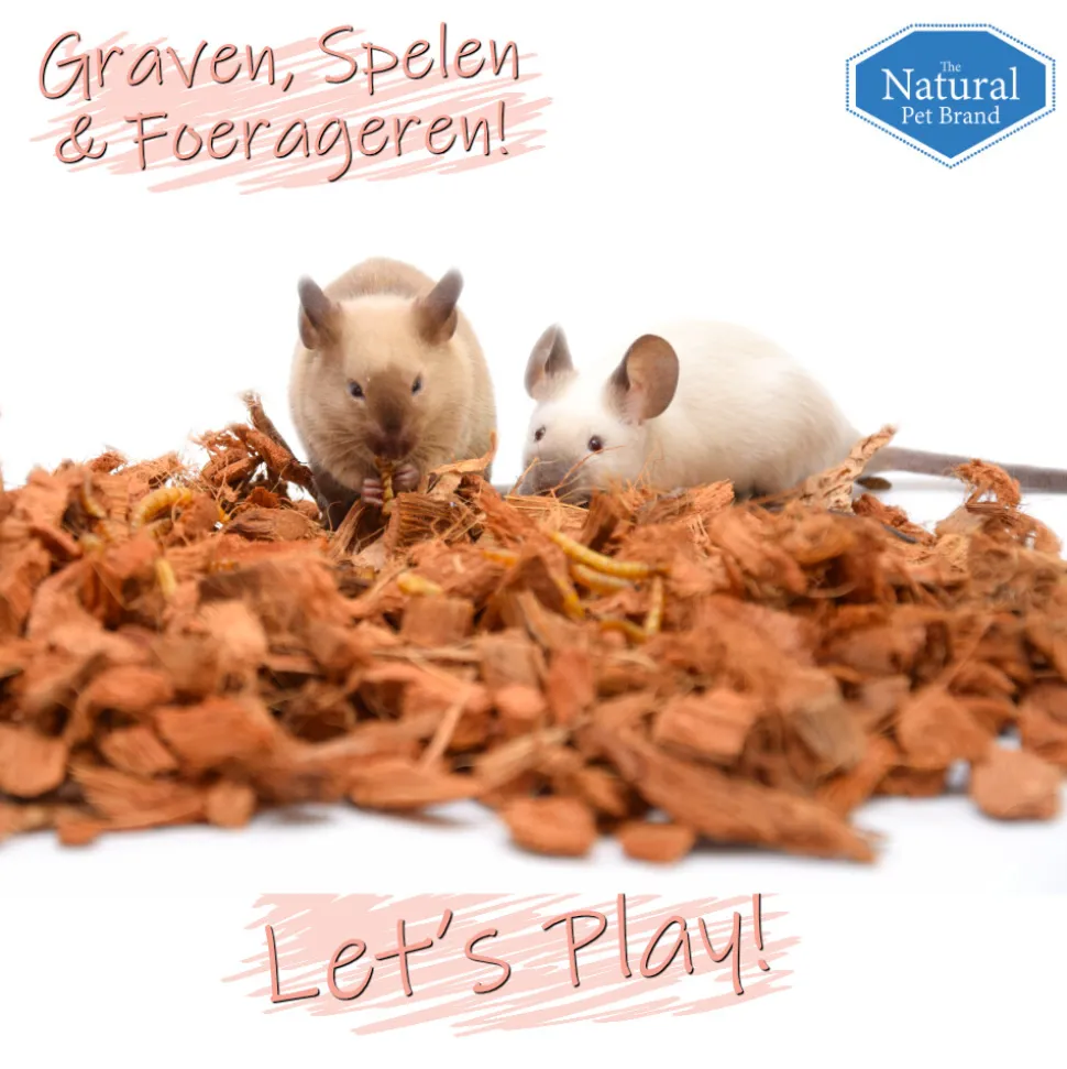 Breng een laag Kokos N Kokos van minimaal 5 cm dikte aan als toplaag bovenop een bestaande basisbedekking. Deze laag biedt een speelse en stimulerende omgeving voor jouw huisdieren. Strooi bijvoorbeeld wat voedsel door de kokosvezel om hun foerageergedrag te stimuleren en hen aan te moedigen op een natuurlijke manier naar voedsel te zoeken. Deze bodembedekking is ideaal voor graven, spelen en nestelen, en houdt jouw huisdieren actief en gelukkig. Verwijder dagelijks vuile plekken en vervang regelmatig de bodembedekking volledig om een schone en hygiënische omgeving te behouden. Kokos N Kokos biedt een verrijkende en natuurlijke leefomgeving voor alle knaagdieren, konijnen en vogels.